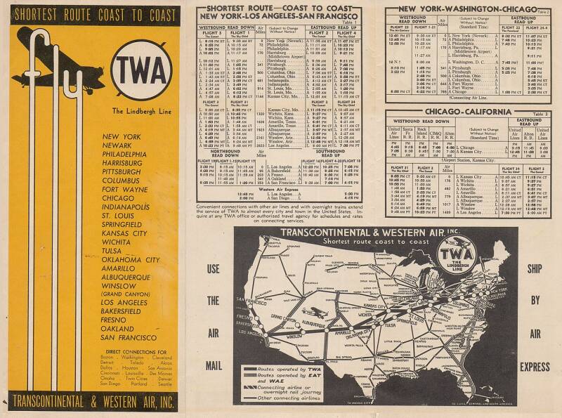 Above:- TWA coast-to-coast schedules and route map, September 1933
